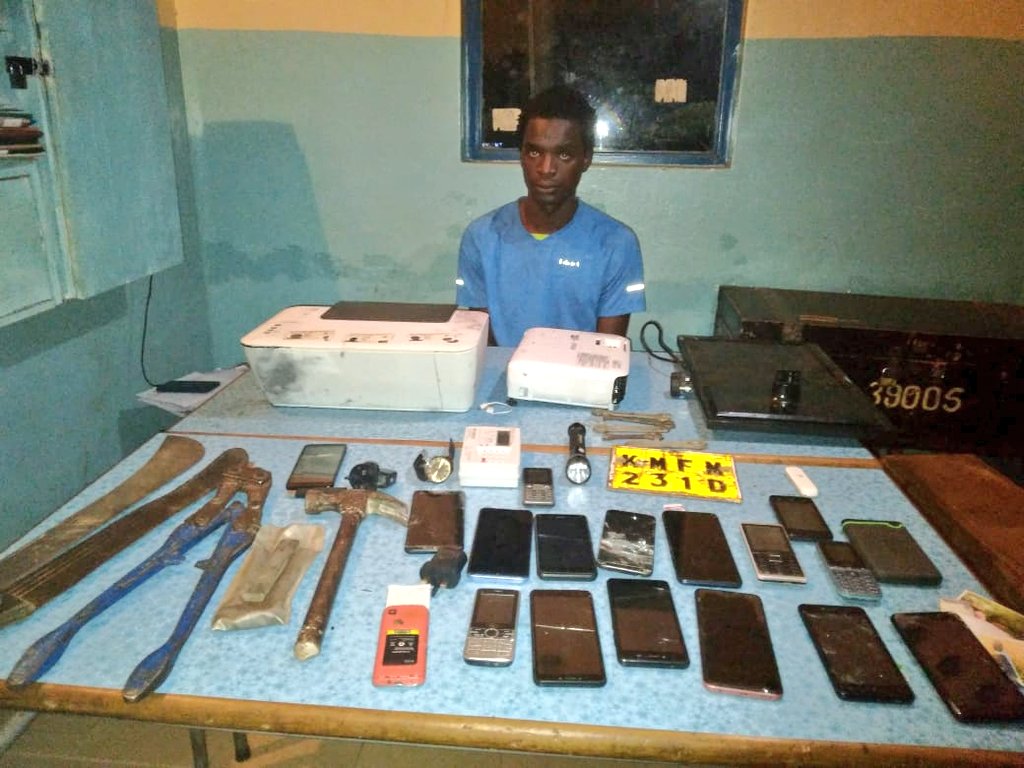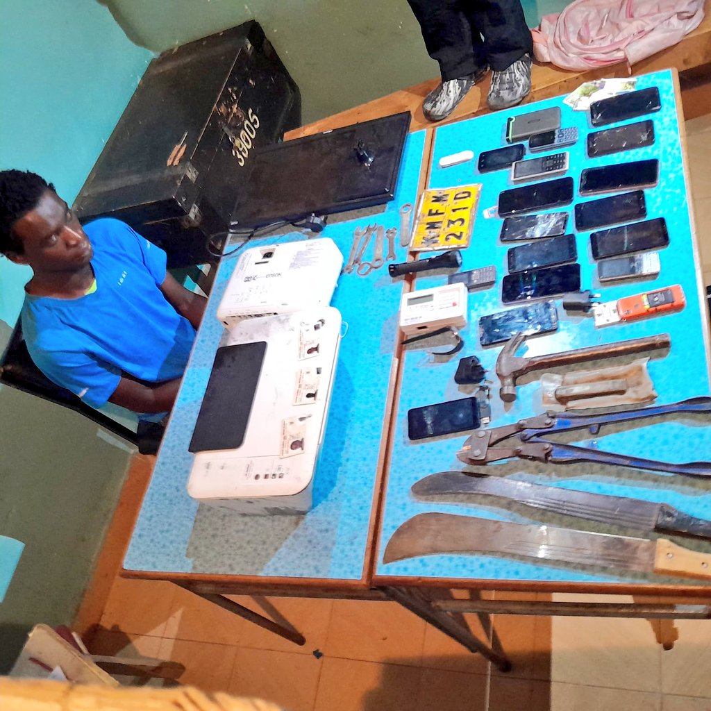 Among the recoveries were made in his house, it was gathered, includes a getaway motorcycle registration numbers KMGE 652Q and KMFM 231D, assorted mobile phones and home appliances, National ID cards, two pangas, steel cutters, several spanners, a printer, a projector, screw drivers among others.